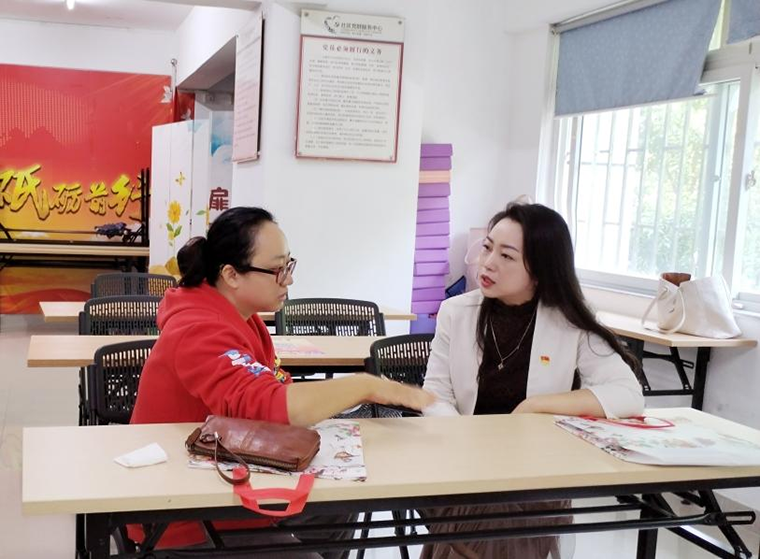 (图为王萃律师耐心解答社区居民的法律咨询