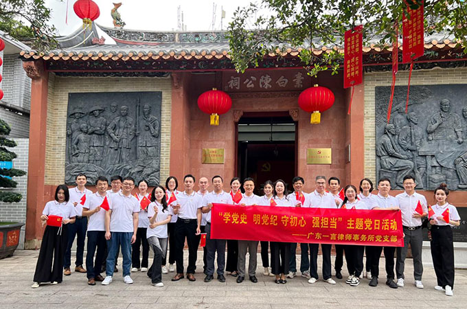 为庆祝中国共产党成立103周年,认真贯彻落实习近平总书记关于党纪学习教育的重要讲话和重要指示精神,广东一言律师事务所党支部在7月开展了形式多样的党建活动。