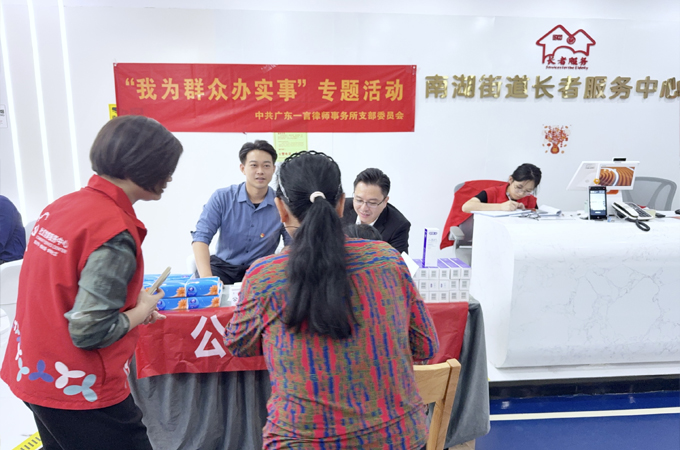。。本次活动是基层党组织联动共建的一次生动实践。一言、益人两家律所均为扎根罗湖区近30年的老所,通过资源共享、优势互补,将专业法律服务精准送进社区;南湖街道长者服务中心则发挥桥梁作用,确保活动真正惠及有需要的长者。“党建+公益+为老服务”的创新模式,既丰富了主题党日活动内涵,也凝聚起敬老爱老的社会合力,展现出党建引领基层社会治理的温度与效能。