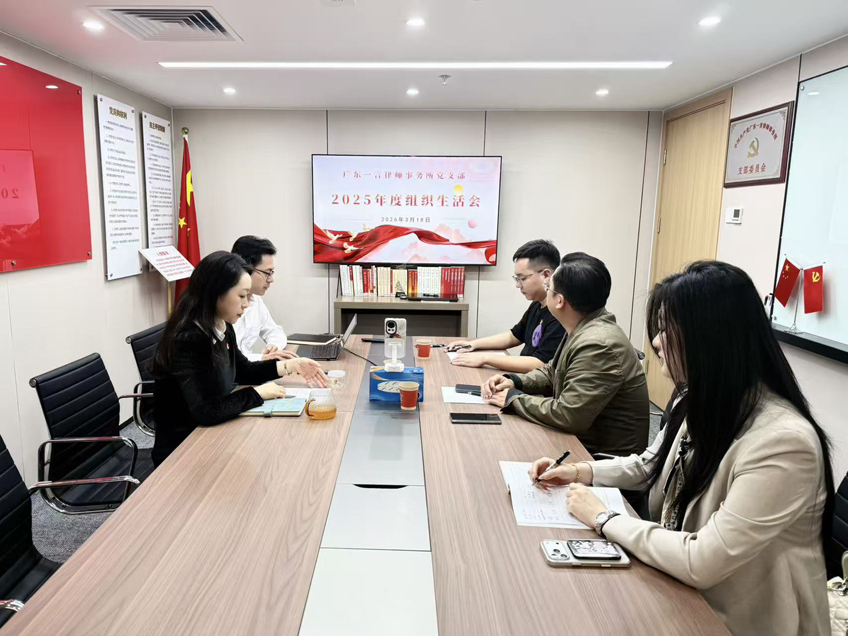 。。广东一言律师事务所党支部于2026年3月18日在党员活动室召开2025年度专题组织生活会并开展民主评议党员工作。会议由支部书记王萃同志主持,紧扣主题,程序规范,氛围严肃,达到了统一思想、增进团结、推动工作的目的。