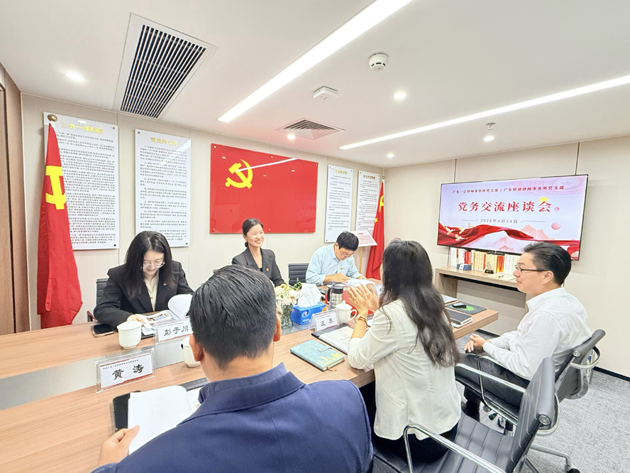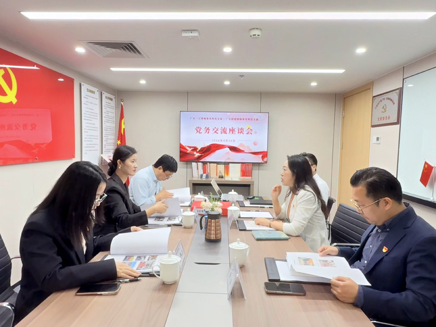 。。2026年4月24日下午,广东一言律师事务所党支部迎来了广东联建律师事务所党支部书记林小曼、宣传委员李帆、党务工作者彭子川一行,双方共同开展了党务工作交流座谈活动。