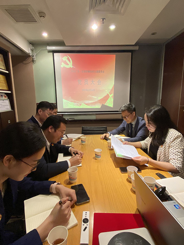 2021年3月26日,中共广东一言律师事务所支部委员会在律所会议室召开党员大会暨党史学习教育动员会,会议由支部书记王萃主持,律所袁伟乐主任出席会议,支部党员参加会议。