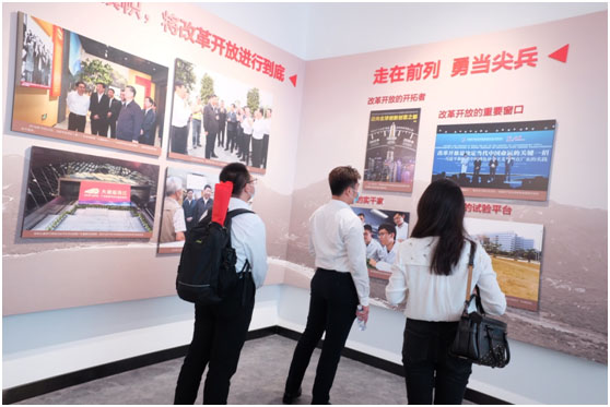 深圳党史馆主要由“红旗屹立深圳湾”、“社会主义新宝安”、“改革开放排头兵”、“新时代的先行区”四部分组成,按照历史发展脉络,系统地介绍了深圳地区在中国共产党领导下进行革命、建设和改革的不懈奋斗史以及所取得的辉煌成就。通过讲解员的讲述,大家系统了解了我们党在深圳地区经历的波澜壮阔的伟大历史进程。
