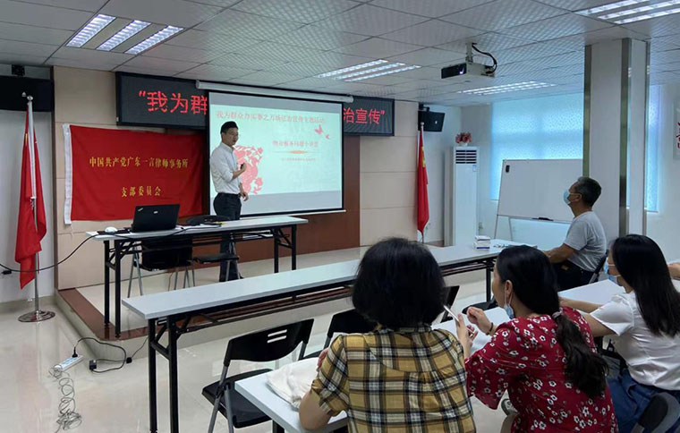 2021年9月27日,为深入开展“我为群众办实事”实践活动,根据《中共广东省律师行业委员会 广东省律师协会关于印发“我为群众办实事•十百千万惠民生”实践活动行动计划的通知》(粤律党【2021】21号)文件要求,广东一言律师事务所党支部与深圳市罗湖区翠竹街道翠平社区工作站在翠平社区党群活动中心联合举办了《我为群众办实事之万场法治宣传主题活动——物业服务问题小课堂》主题讲座活动。