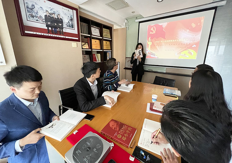 为庆祝建党100周年,加强党史教育,传承红色精神,凝聚时代力量,2021年10月27日下午,广东一言律师事务所党支部举办了“书香浸润初心”读书分享会暨十月主题党日活动。部分党员律师和青年律师参加了本次读书分享活动。