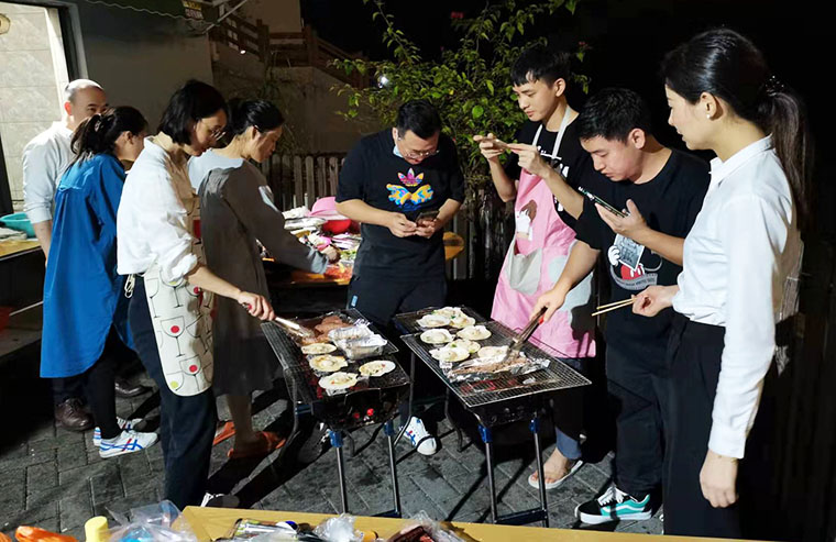 会议结束后,大家开始自己动手准备丰盛的晚餐,各司其职,有的洗菜、有的切菜、有的生火、有的烧烤、有的煮火锅,在一片欢声笑语中开始了热烈的聚餐活动。