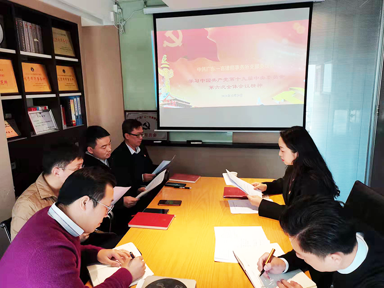 2021年12月29日下午,广东一言律师事务所党支部在律所会议召开了“深入学习贯彻党的十九届六中全会精神”学习会,党员和部分青年律师参加了会议。支部书记王萃同志主持会议并讲话。